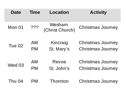 For our Christmas Journey presentation, the Team set up 3 large gazebos and transform the school hall into Bethlehem and 5 scenes from the Nativity Story.